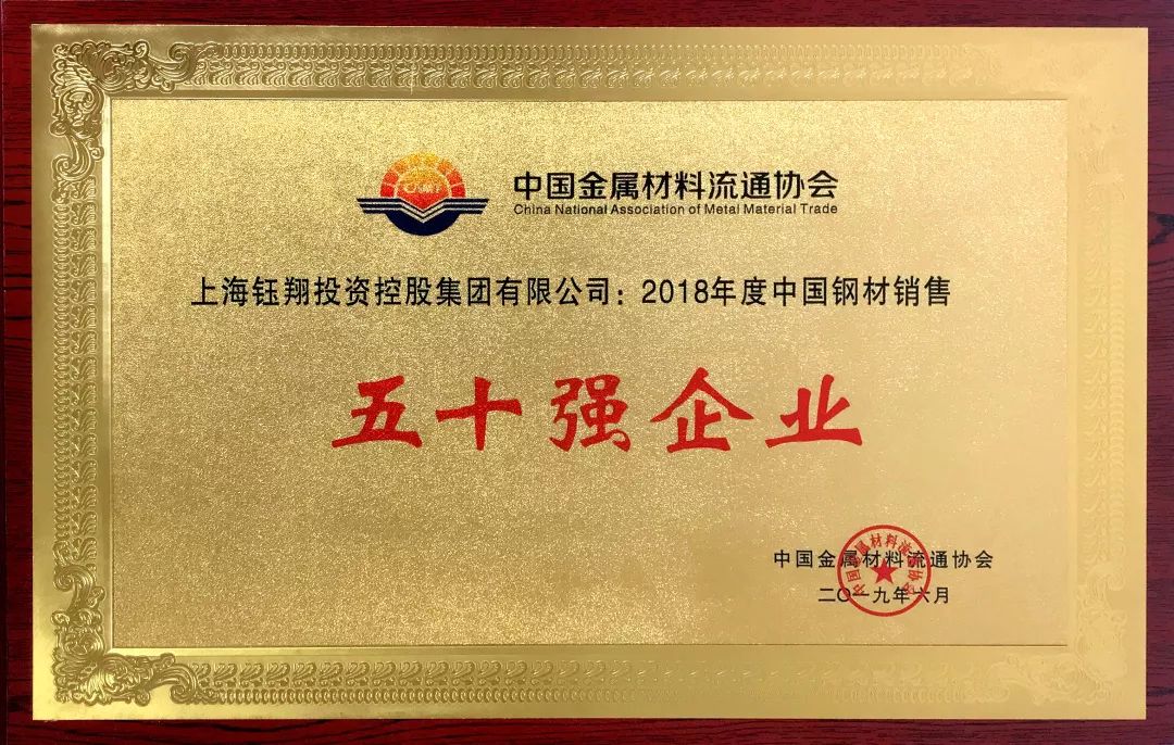 會上頒發(fā)了一系列鋼鐵行業(yè)內(nèi)的年度大獎,鈺翔控股集團(tuán)憑借在鋼鐵智慧供應(yīng)鏈領(lǐng)域取得的成果、實力和口碑榮獲中國金屬材料流通協(xié)會2018年度中國鋼材銷售50強(qiáng)、2018年度中國鋼鐵供應(yīng)鏈建設(shè)示范企業(yè)兩項殊榮。